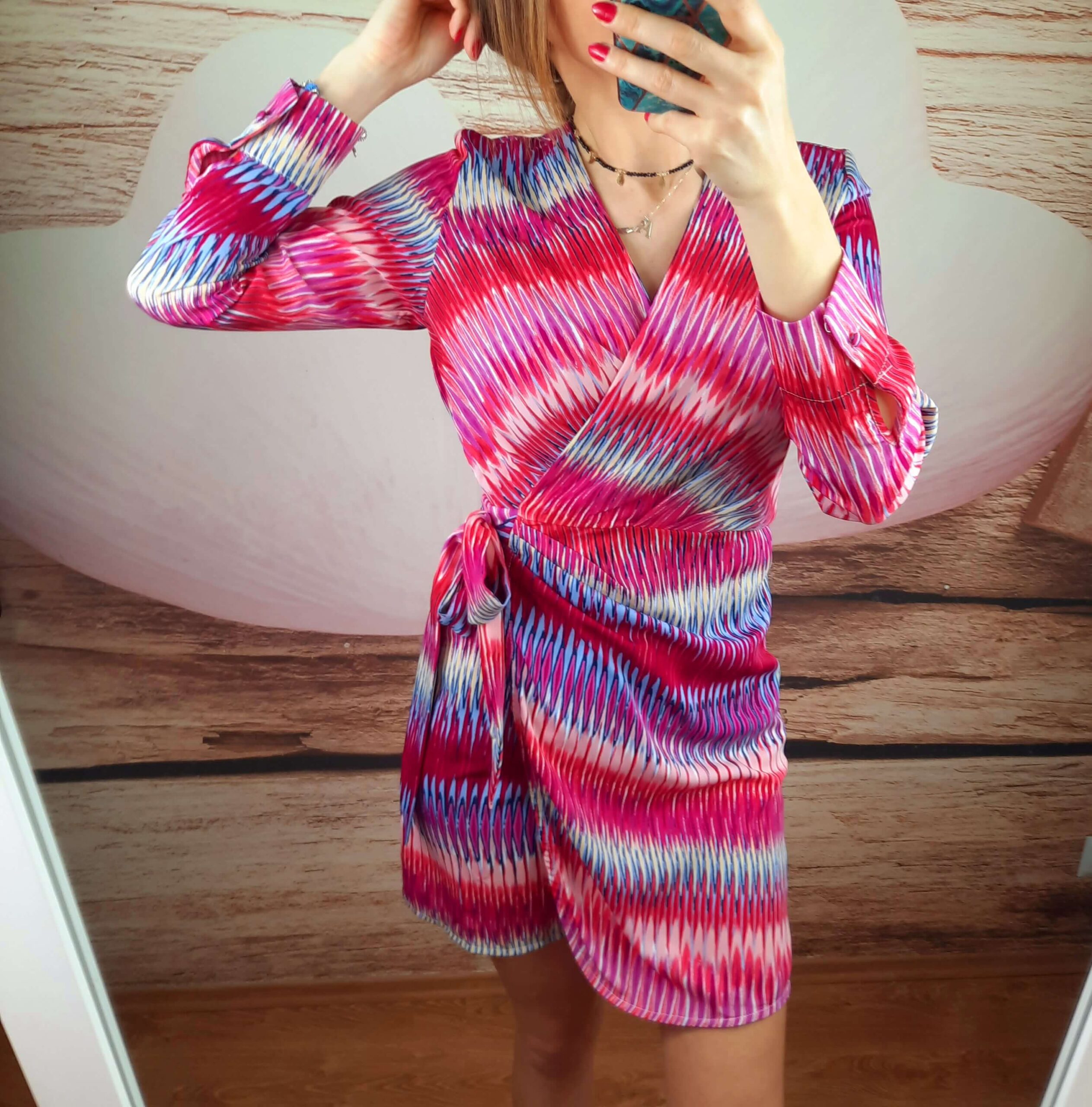 Sukienka w przepięknych kolorach  zakładana kopertowa , długi rękaw